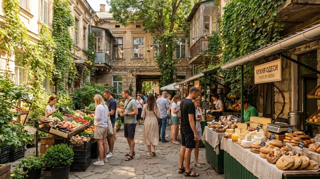 オデッサの海岸通りは、プリモルスキー大通り、港の景色、デリバスィウスカ通りやパッサージュ周辺の冬でも明るい市内中心部など、まさに絵葉書のような風景です。しかし、この街の本当の味わいは、数ブロック内陸に入った場所にあります。門の向こう側、洗濯物の下、市場のカウンター、そしてスープとパンを囲んで家族の議論が解決されるような小さなキッチンの中に息づいています。